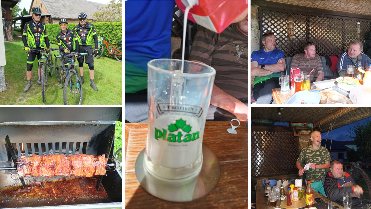 nebereme Karlovi prognózy, ale přesto posouváme start o hodinu...odjíždím z domu s posledními kapkami deště, na startu nikdo, chvilku se proplétám přes gastro-festival. U Zádušáku už vylézá sluníčko, a u Knyku parafrází písničky od Turba : sluníčko promítá stíny nás dvou....já a kolo. V Jilmu už čekají Roman s Jirkou. pokračujeme po upravené trase...a už je tady Lučice (46 km, +576 m=SK12,5; kluci chotěbořský tedy o 15 míň, ale o to víc v neděli domů). Maso se točí na rožni, pivo se točí z chlaďáku. Na místě Honza jako hostitel, Jarda a Karel, který jel svojí bikovou trasu. Přijíždí Pepa, po hasičských závodech Míla, po cyklo závodech Petr. Pak ještě Standa. Maso bylo víc jak sqělé, trochu petanque, trochu piva, výborná zábava. /Milan/