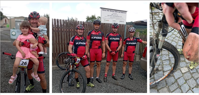 Takže konečně k samotnému závodu. Po deštích v předchozích dnech byla trať na cestách a v lesích hodně mokrá, podmáčená a bahnitá a v úseku mezi Možděnicemi a Křemenicí pak byla ještě jako chuťovka velikánská louže močůvky, kterou nešlo objet (popravdě, kdo by se tím zdržoval). Mimo to jsem si ani nevšiml, že by se našel odvážlivec, který by říční brod přes Doubravu pod Sokolovcem vzal střemhlav vodou. Ještě, že je tam ta lávka, jinak by se konalo hromadné koupání pelotonu, jak je hladina řeky vysoko I diváci tušili, že se říční drama tentokrát konat nebude, protože jindy jich tam je velký počet a borce skvěle povzbuzují. Přes všechny výše uvedené nástrahy se mi jelo parádně až na... Až na prudký lesní sjezd z Barovic, kde jsem se nechal unést atmosférou a spíš nebrzdil než brzdil a potykal jsem si s pařezem, který tam jen tak trčel u cesty. No nic moc se nestalo, kolo OK, koleno poznamenal malý crash, zdárnému dojetí do cíle tedy nic nebránilo. No a po rychlém sešupu od Lhůty a Lán jsem se ho dočkal. Ostatně jako všichni další účastníci, protože přes onu těžkou trať hlásil pořadatel, že letos pro nikoho sanitka jet nemusela. Tak to má být. Když jsem projížděl cílem, tak Pegy již měl šest minut taky "po práci" a kousek za mnou pak ještě z party B.S.P. dojížděl Jiříček a jak jsme až z výsledkové listiny zjistili, tak ještě Jirka L., který tam byl pro nás zcela v utajení a ani o sobě nedal vědět. Chjóóó