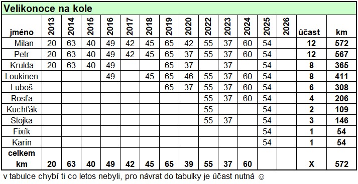 No my se v rámci 13tého ročníku velikonočního bikování podíváme k rybníku Kukle, po Lojzíkově lávce k Cikánčině studánce, přes Polnou k Hadcové studánce. Takže omytí, či napití bude určitě možné. A nebo to spláchneme tradičně pivem na konci.....