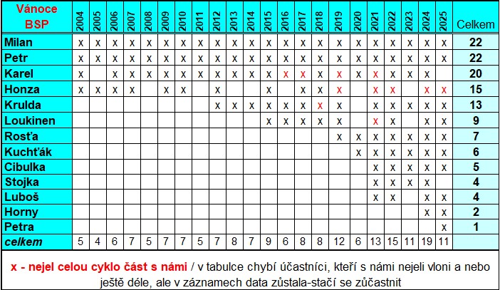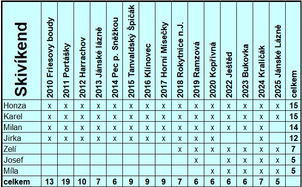 Přihlášeni: Milan (když mi do toho nevleze plánovaná operace kotníku - zjistím v lednu), Rosťa, Míla, Karel, Pepa, Cibulka